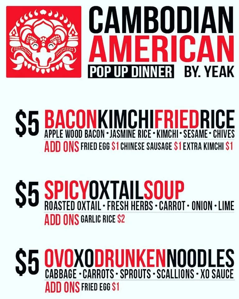 Recommended are Yeak’s Kimchi Fried Rice and VR Grill’s Pork Belly….but honestly, you’re going to want everything. Check out the Menus!