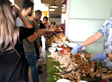Kamayan Pig Roast is a pop-up put on by Chef Darren from We Have Noodles and Chef Kyle from Kalan Kitchen. The Asian fusion flavors come from Filipino, Thai, and maybe some Chinese influence in there.