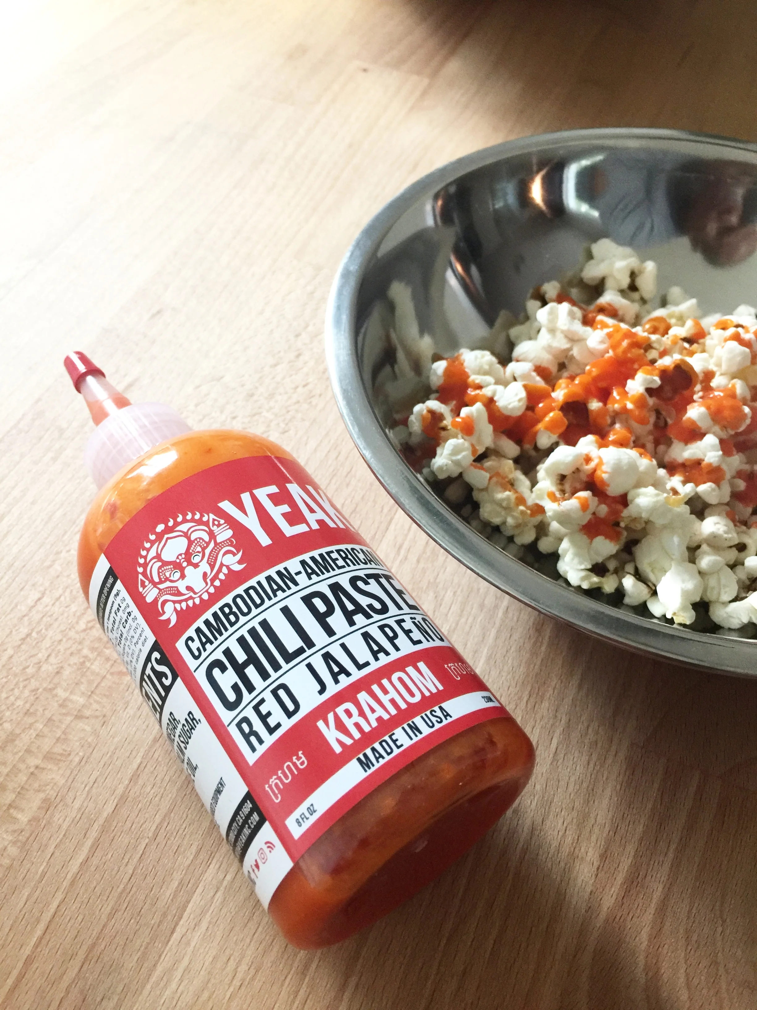 He yelled “Quiet, peasants!” and drizzled the red sauce across the top. A few of us took a couple of bites. Wow! The salt and pepper mixing with the smoky, spicy Krahom hit the perfect balance. Not too hot to overwhelm the natural flavors in the popcorn and still get a hint of salt.